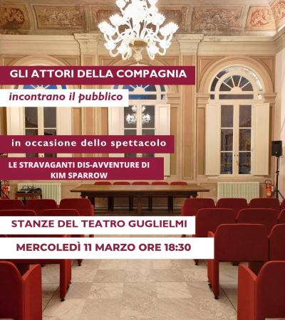 Mercoledì 11 marzo alle ore 18:30, presso le Stanze del Teatro Guglielmi, la compagnia dello spettacolo "Le stravaganti Dis-Avventure di Kim Sparrow" incontra il