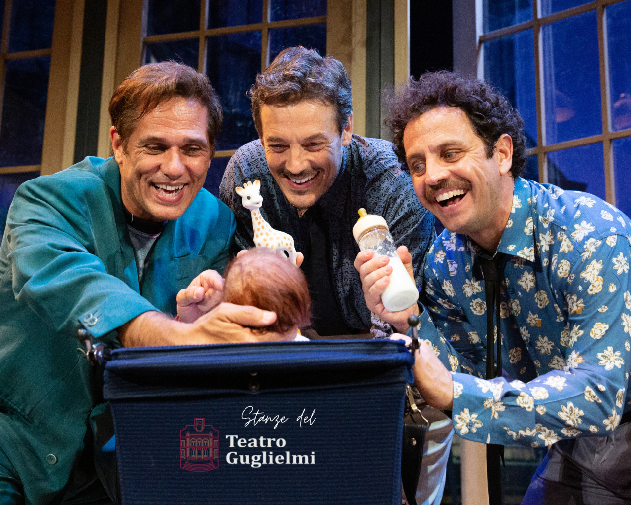 La routine libertina dei tre scapoli incalliti è messa a soqquadro dall’arrivo di una bambina di pochi mesi di nome Marie, abbandonata davanti alla porta della loro casa, che cambierà completamente la vita dei tre scapestrati. Uno spettacolo lieve e brioso sui nuovi modelli di famiglia.