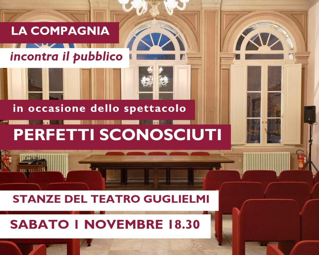 Sabato 1 novembre alle ore 18:30, presso le Stanze del Teatro Guglielmi, la compagnia dello spettacolo "Perfetti Sconosciuti" incontra il pubblico.