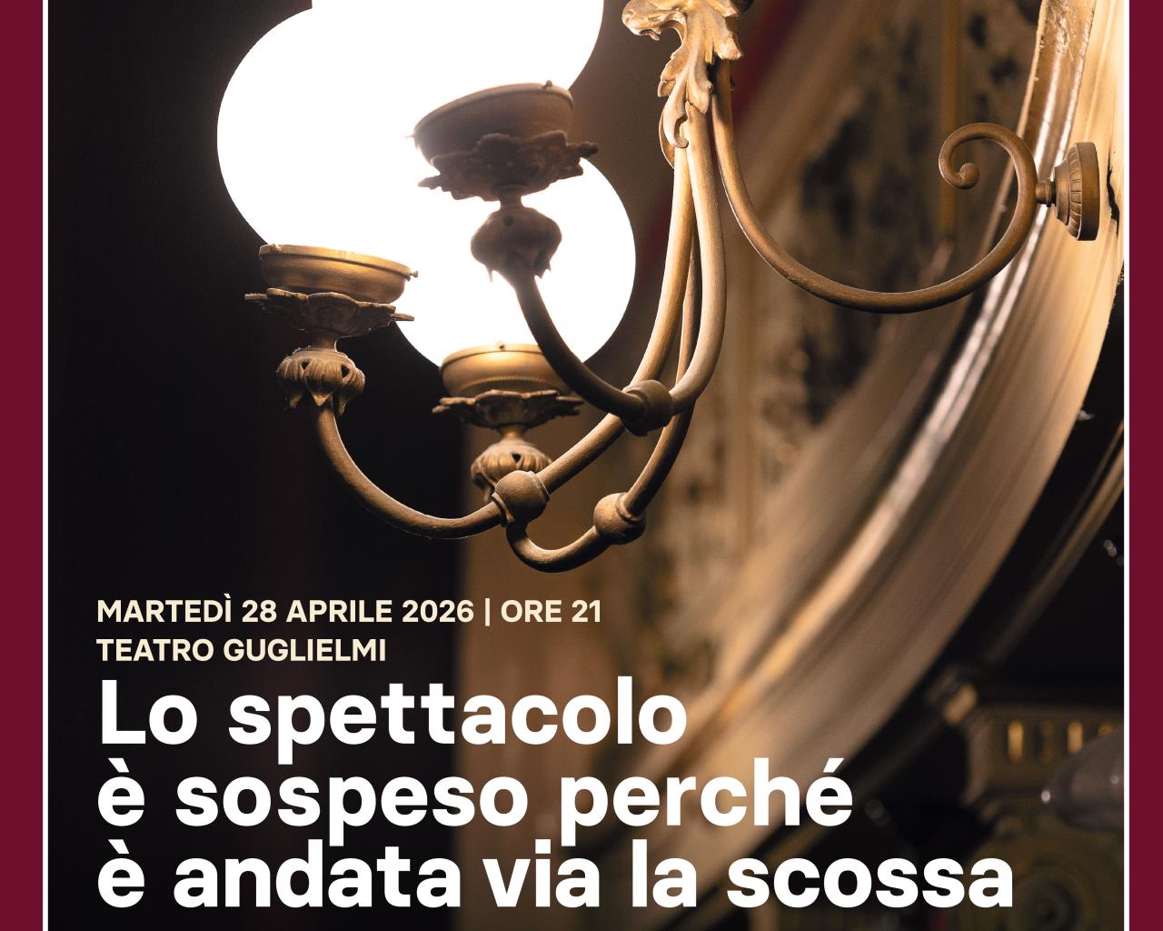 Lo spettacolo è sospeso perché è andata via la scossa, tratto dall’omonimo libro di Paolo Giannotti, racconta i centoquarant’anni del teatro comunale Guglielmi e del suo mondo pittoresco e “magico”.