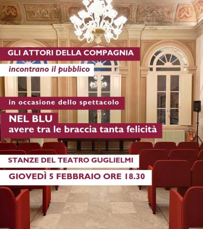 Giovedì 5 febbraio 2026 alle ore 18:30, presso le Stanze del Teatro Guglielmi, gli attori della compagnia dello spettacolo “Nel blu, avere tra le braccia tanta felicità”