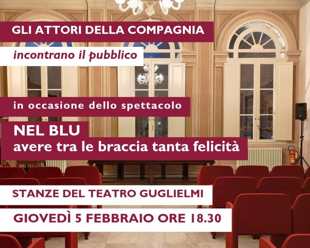 Giovedì 5 febbraio 2026 alle ore 18:30, presso le Stanze del Teatro Guglielmi, gli attori della compagnia dello spettacolo “Nel blu, avere tra le braccia tanta felicità” incontrano il pubblico.