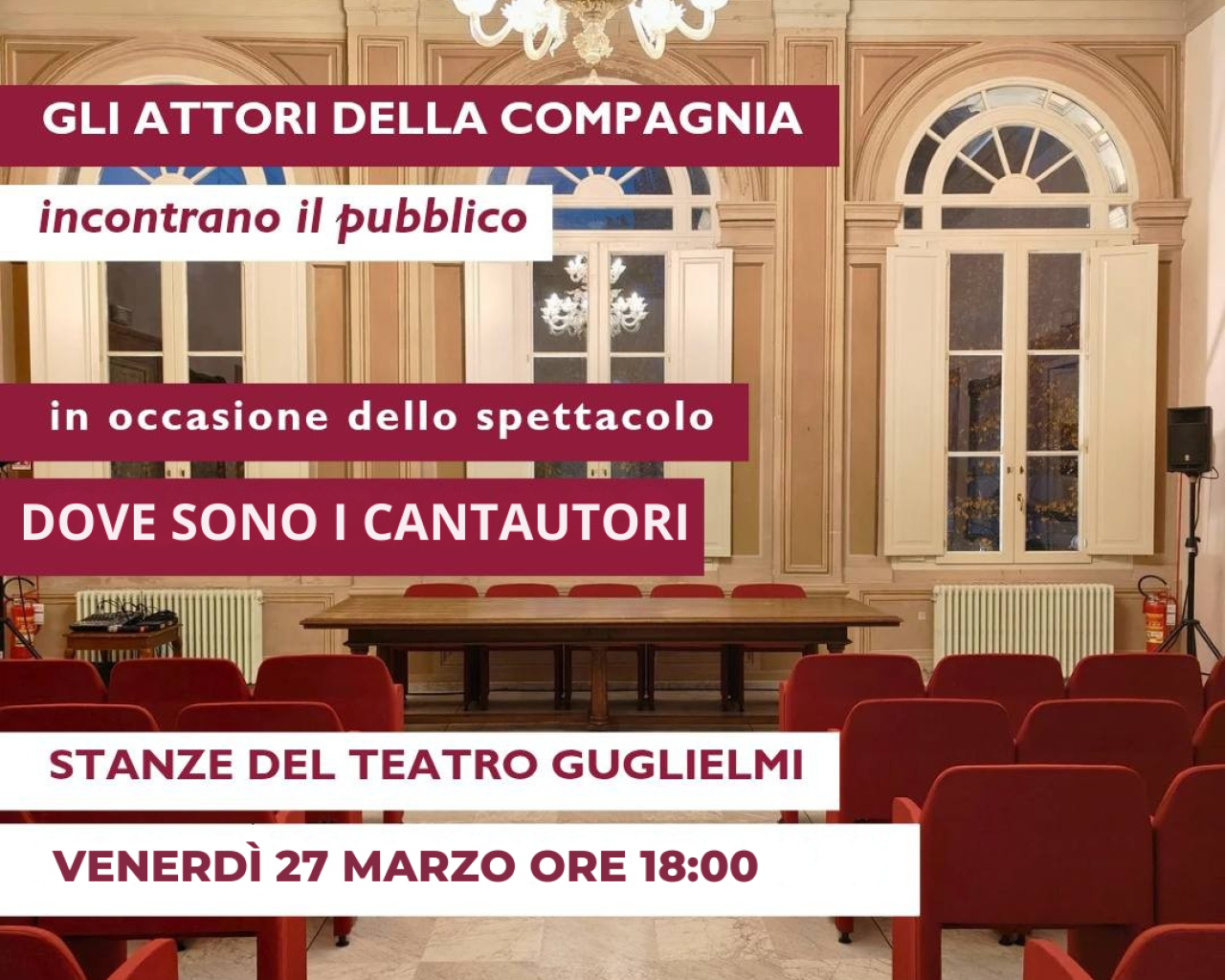 Venerdì 27 marzo alle ore 18:00, presso le Stanze del Teatro Guglielmi, la compagnia dello spettacolo "Dove sono i cantautori" incontra il pubblico.